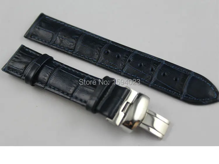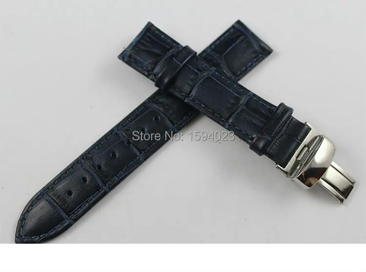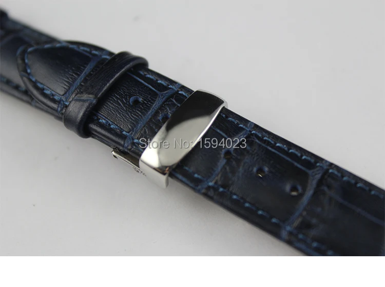 Product Name: 19 мм (пряжка 18 мм) PRC200 T055410 T17 T41 T461 Высококачественная Серебряная Пряжка бабочка + синий ремешок из натуральной кожи