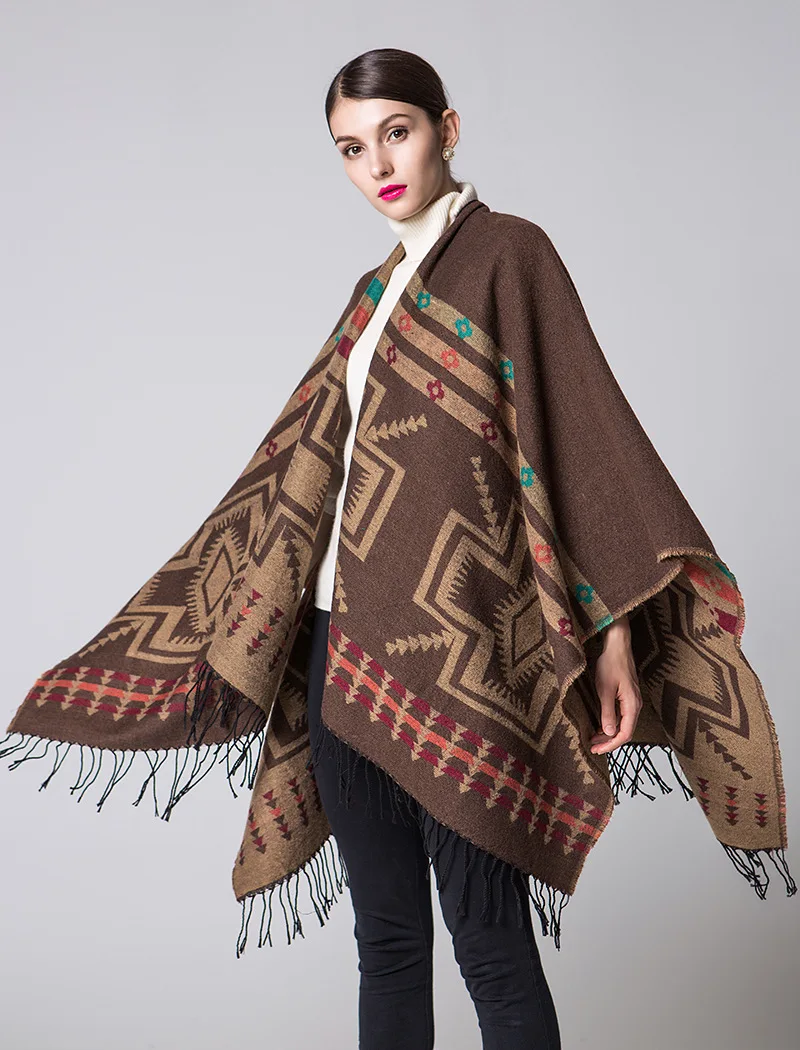 Special Offer 2019 новый стиль женский зимний акриловый имитация кашемира большое пончо кисточкой пашмины теплое пальто Discount 0% Today!