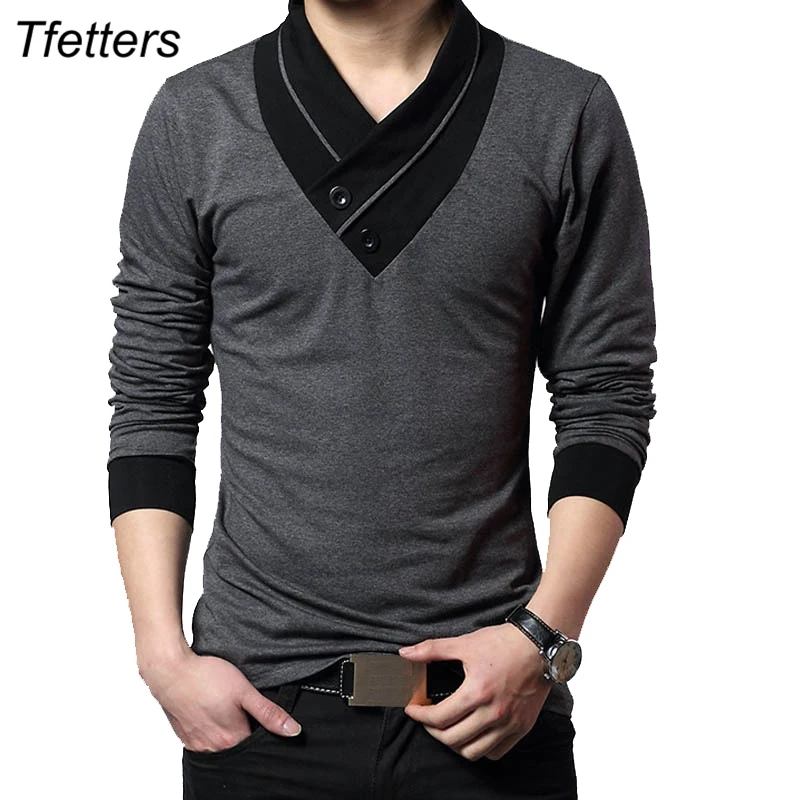 Special Offer TFETTERS брендовая Осенняя модная мужская футболка, Мужская футболка в стиле пэчворк с v образным вырезом и длинным рукавом, Приталенная футбол... Discount 0% Today!