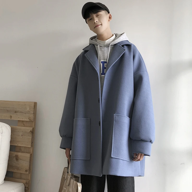Product Name: 2019 осень и зима Новая ветровка мужская длинная специальная свободная одноцветная куртка модное повседневное шерстяное пальто M 2XL
