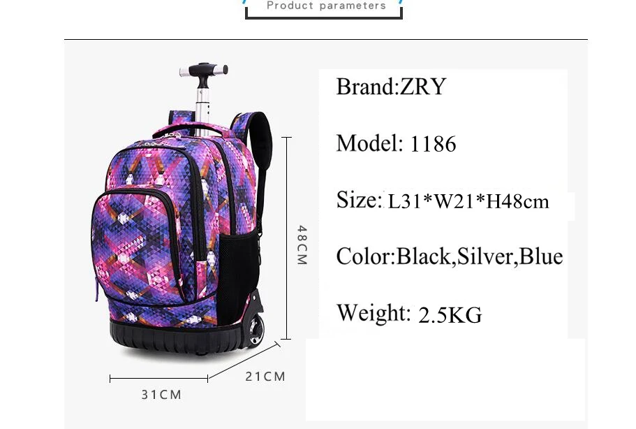 Product Name: 18 дюймов рюкзак для путешествий, школьные рюкзаки на колесиках, школьный рюкзак для подростков, мальчиков, детская школьная сумка с колесик...