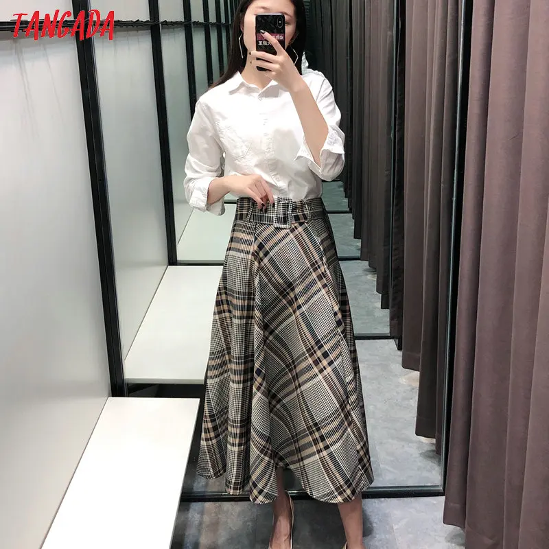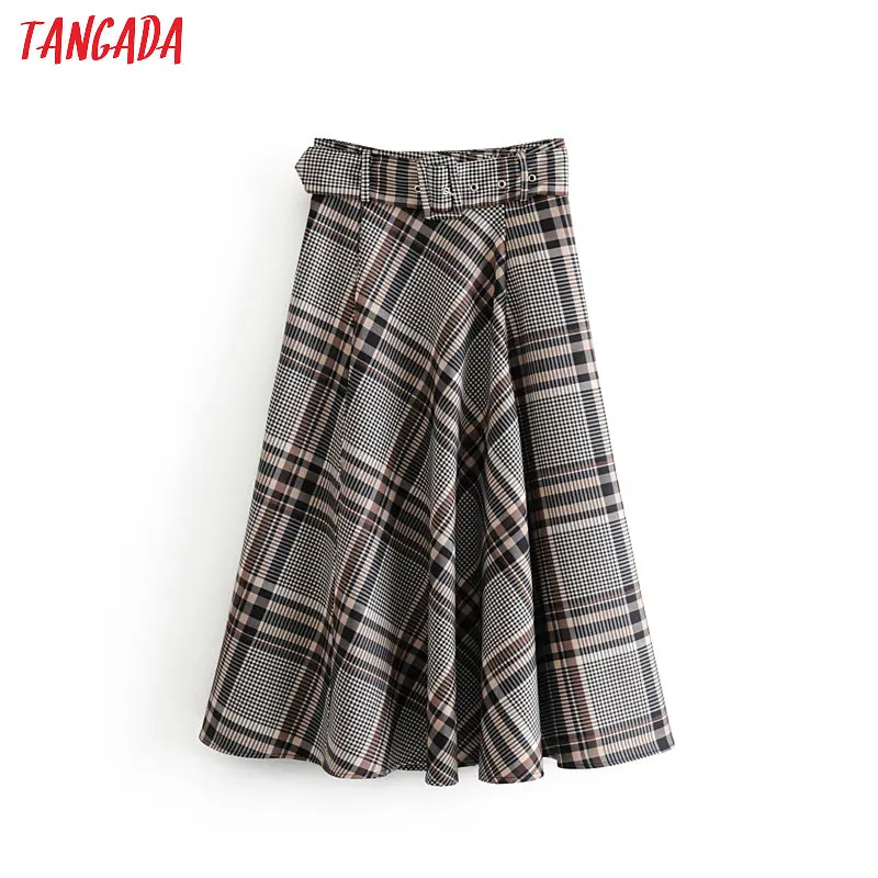 Special Offer Tangada, Женская клетчатая юбка миди, faldas mujer, 2019, зимняя, винтажная, на молнии, для офиса, для девушек, элегантная, шикарная, длинная, юбки SW02 Discount 30% Today!