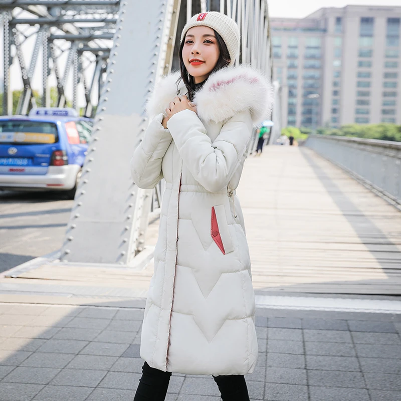 Product Name: 2019 женские длинные толстые парки куртка с капюшоном с большим меховым воротником теплое пальто в полоску женские модные зимние пальто Женс...