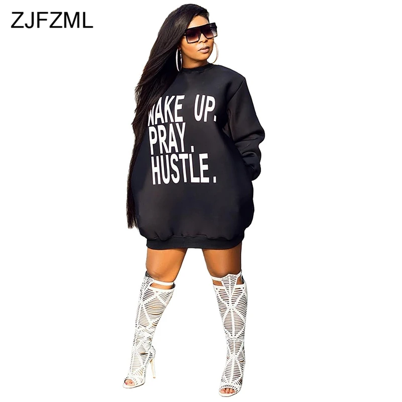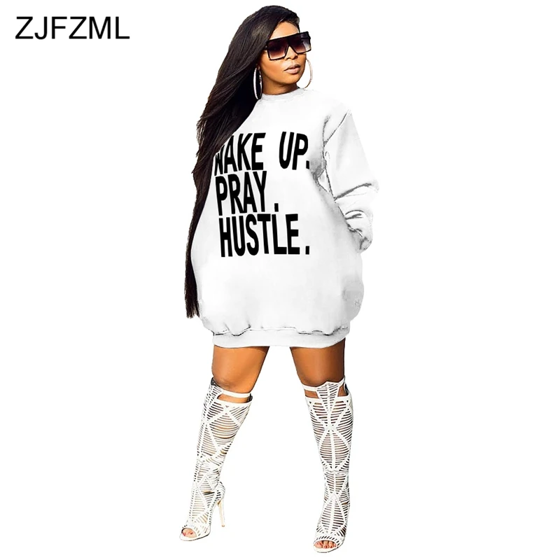 Special Offer ZJFZML сексуальное платье с буквенным принтом, плюс размер, женское свободное платье с круглым вырезом и длинным рукавом, повседневное свободн... Discount 38% Today!