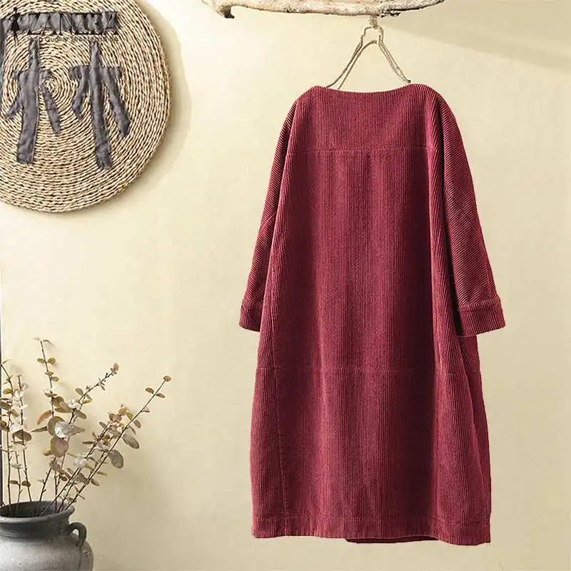 Special Offer Женский вельветовый свитшот, платье, ZANZEA, осень 2019, кафтан, Повседневный, длинный рукав, однотонный, Vestidos, женские толстовки, халат, пуловеры, ... Discount 42% Today!