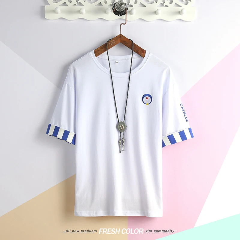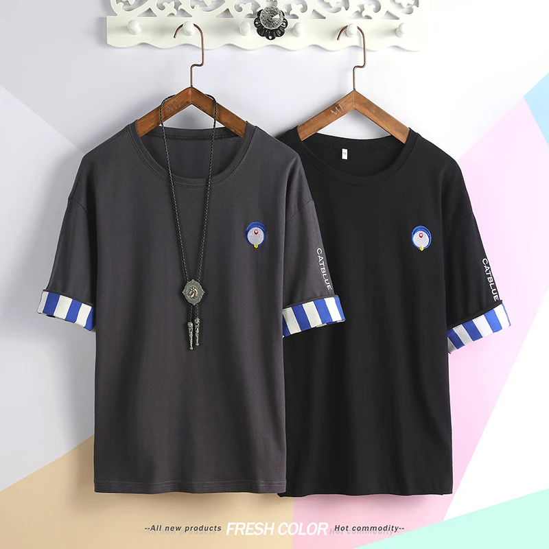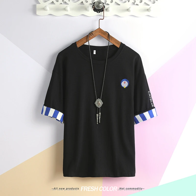 Special Offer Новая мужская футболка с круглым вырезом и короткими рукавами, облегающая синяя полосатая футболка, Мужская футболка большого размера, бес... Discount 44% Today!