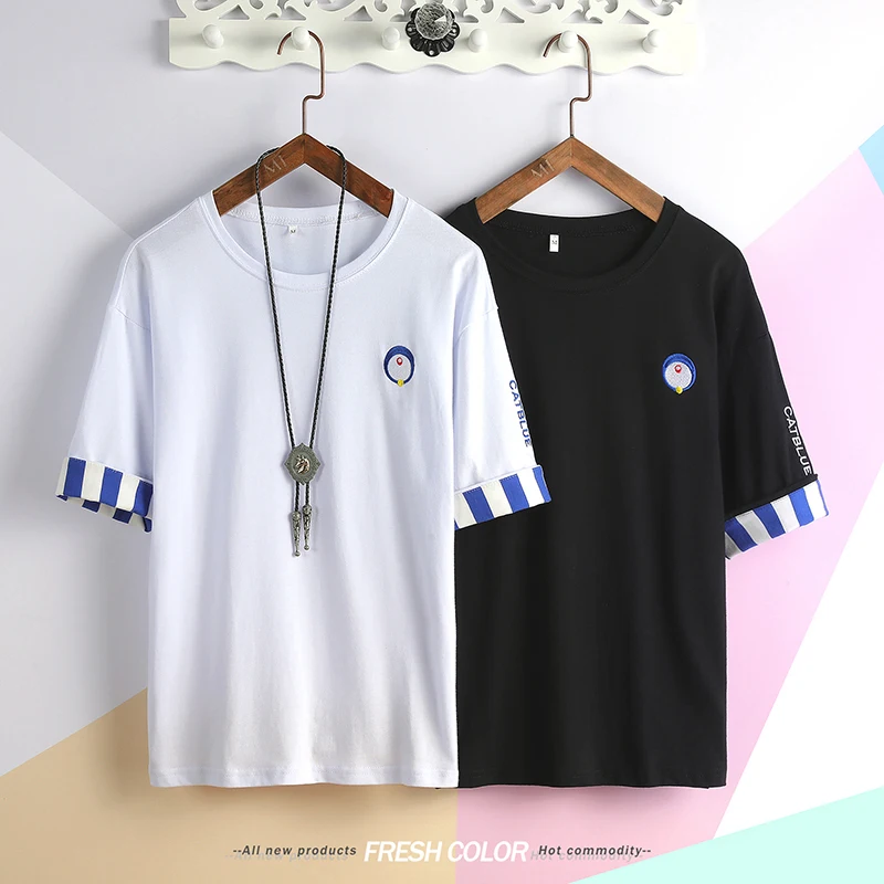(44% Off) Купить Новая мужская футболка с круглым вырезом и короткими рукавами, облегающая синяя полосатая футболка, Мужская большого размера, бес... Продажа Дешево