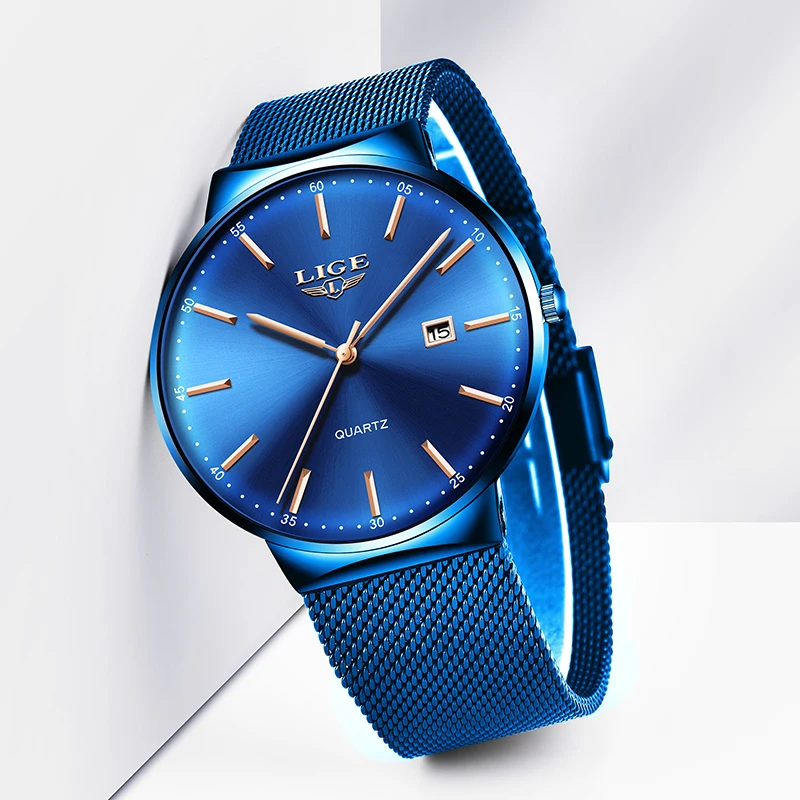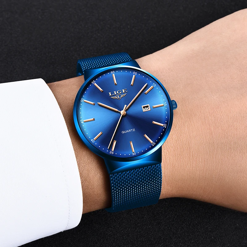 Product Name: LIGE Топ люксовый бренд мужские полностью из нержавеющей стали с сетчатым ремешком деловые часы Мужские кварцевые часы для свиданий мужские ...