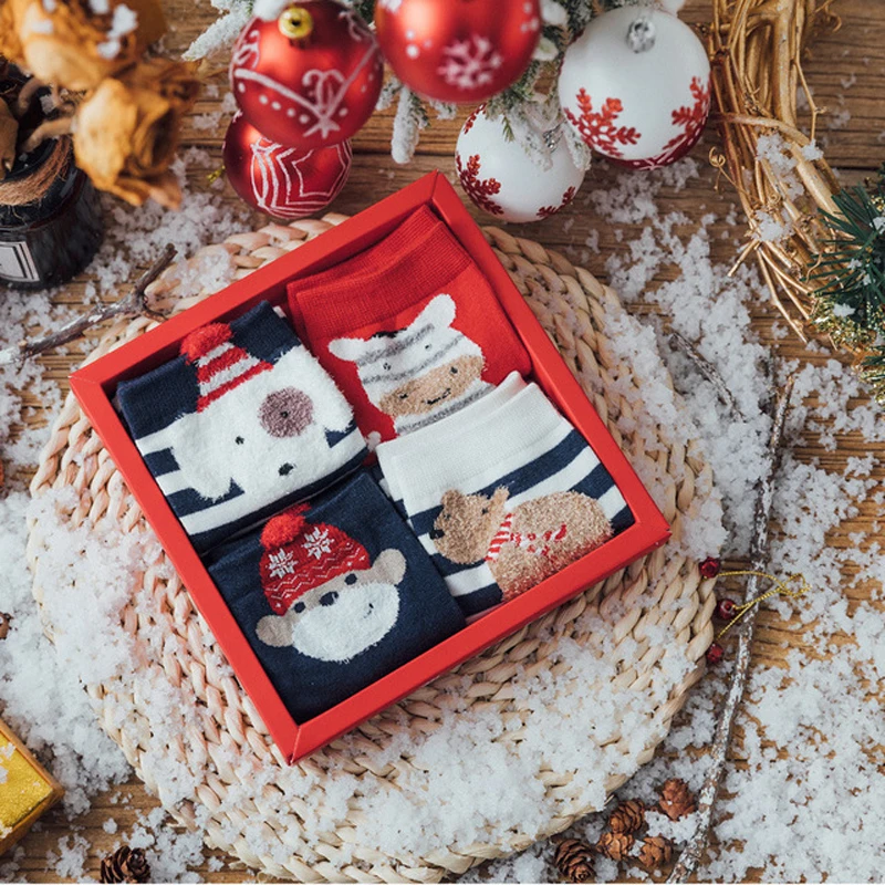 Special Offer 4 пары рождественских носков для женщин, Осенние милые повседневные хлопковые носки со стереоскопическим рисунком, женские носки с подароч... Discount 46% Today!