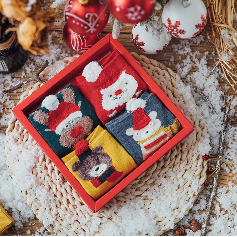 (46% Off) Купить 4 пары рождественских носков для женщин, Осенние милые повседневные хлопковые носки со стереоскопическим рисунком, женские с подароч... Продажа Дешево