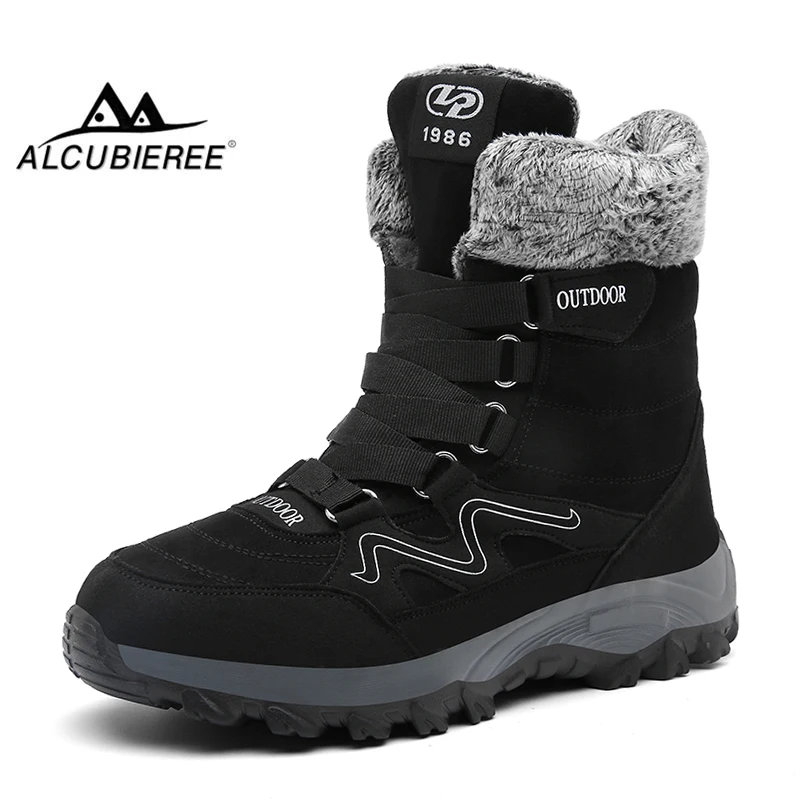 Product Name: ALCUBIEREE брендовая мужская зимняя теплая обувь уличные высокие плюшевые меховые зимние ботинки для мужчин с круглым носком, нескользящая рабо...
