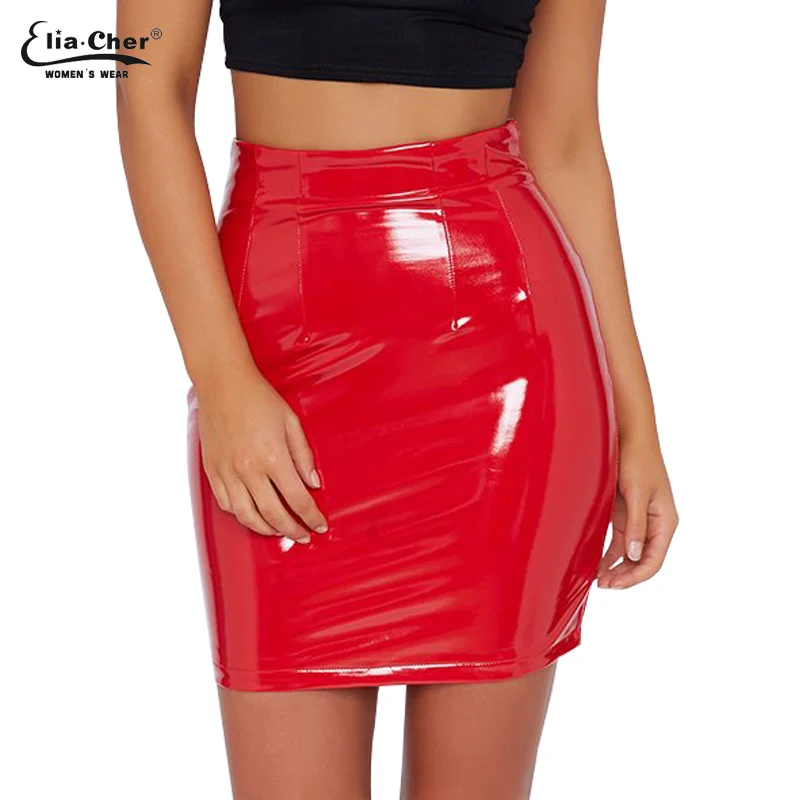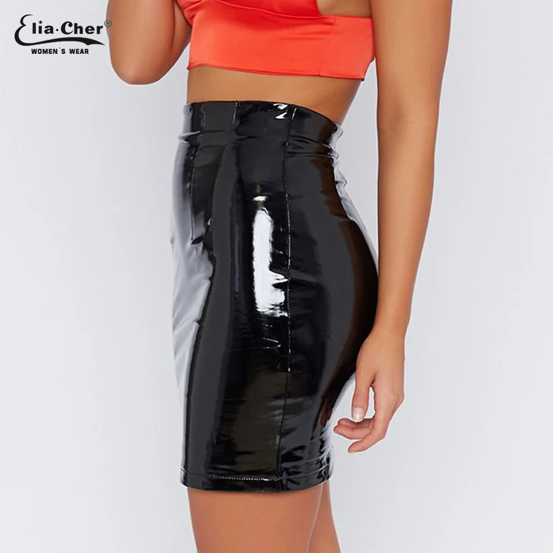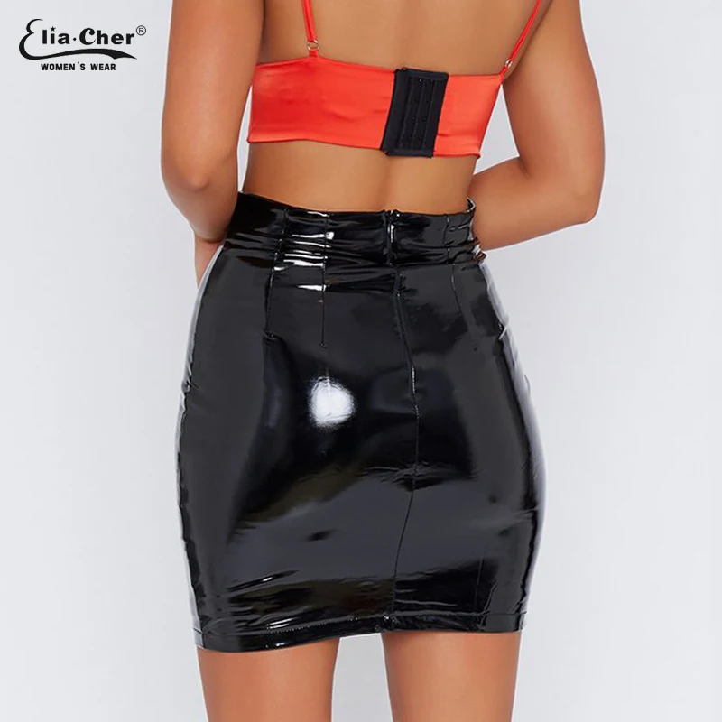 (48% Off) Купить Сексуальные женские мини юбки карандаш из искусственной кожи с искусственным мехом и высокой талией, однотонные шикарные Элегантные повсе... Цена Дешево