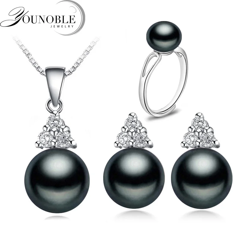 (51% Off) Купить Настоящий натуральный пресноводный жемчуг набор украшений для женщин, Трендовое свадебное серебро 925 пробы ожерелье серьги наборы девушки ... Продажа Дешево