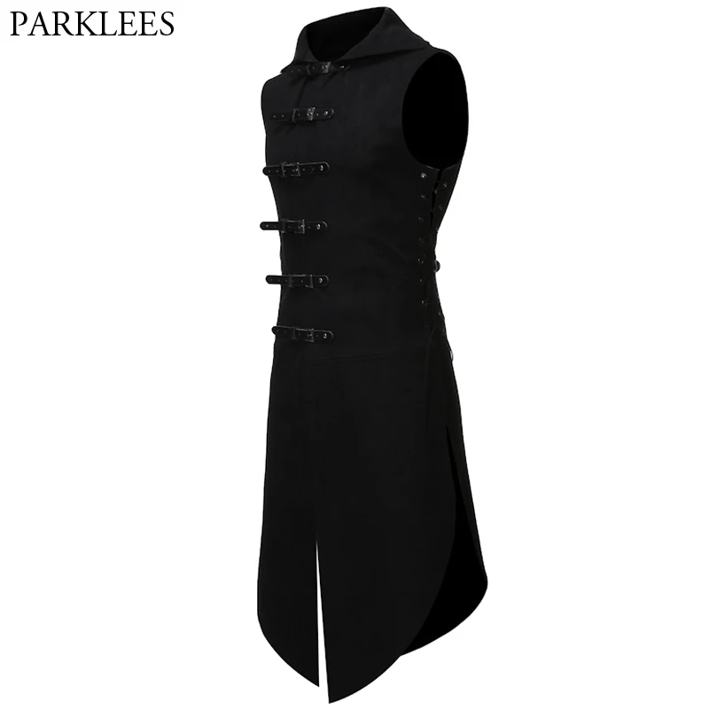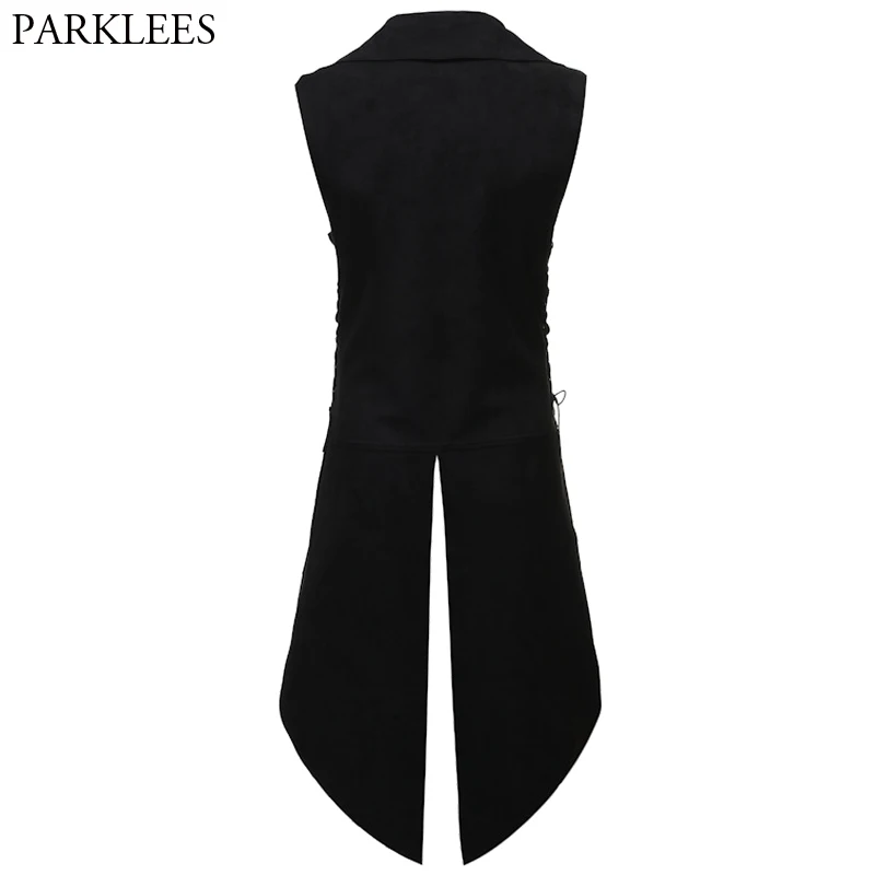 (52% Off) Купить Мужской жилет а готическом стиле в викторианском стимпанк косплей мужской кожаная Кнопка подол Сплит Длинные Жилеты Мужчины Ре... Цена Дешево