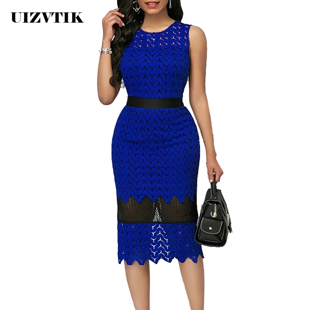 (55% Off) Купить Женское кружевное платье, повседневное облегающее длинное платье с разрезом, в стиле пэчворк, для офиса, лета, 2019 Продажа Дешево