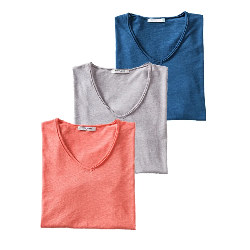 (55% Off) Купить GustOmerD 3 шт 100% хлопок Однотонная футболка мужская повседневная с V образным вырезом коротким рукавом мужские футболки мягкие на ощупь высок... Цена Дешево