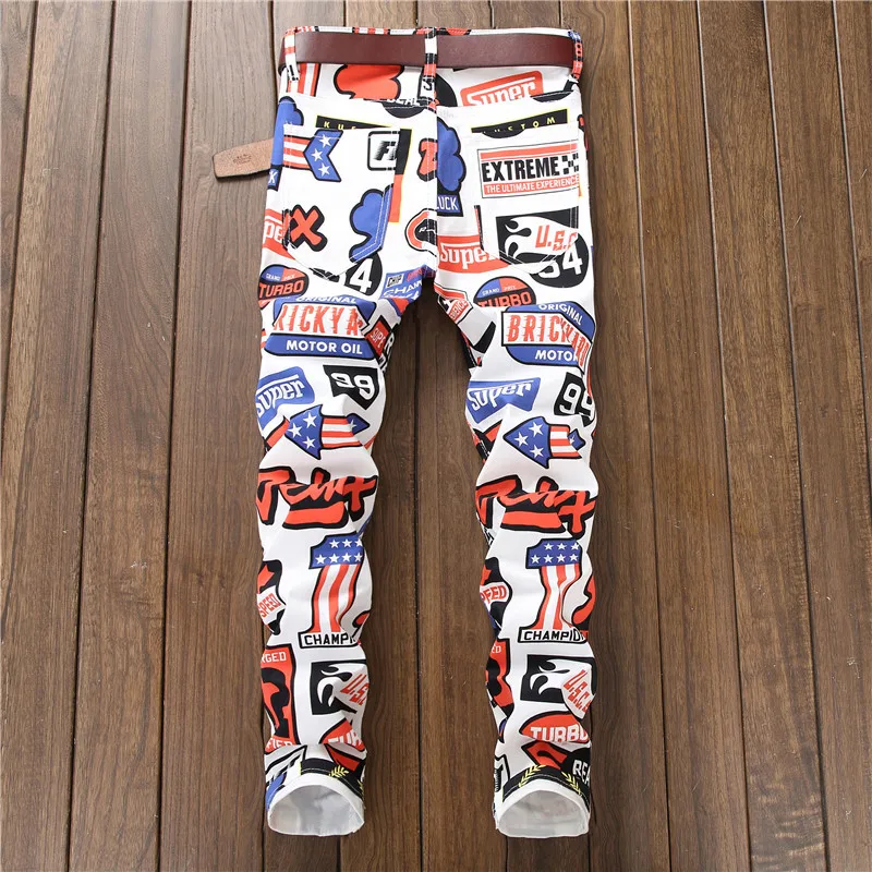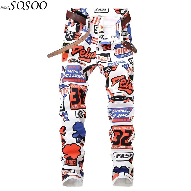 Special Offer Новинка 2018, мужские джинсы с цветным принтом, Стрейчевые джинсы, мягкие удобные джинсы в европейском и американском стиле, мужские джинсы #... Discount 6% Today!
