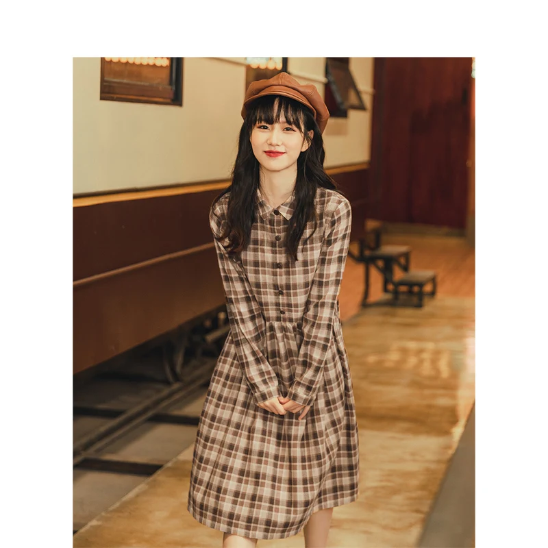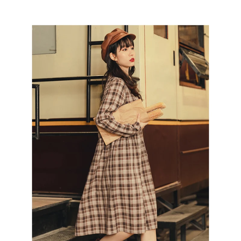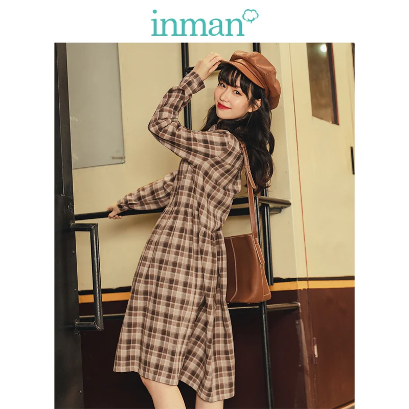 Product Name: INMAN , осень 2019, Новое поступление, Ретро стиль, для молодых девушек, с отложным воротником, в клетку, свободное, подходит ко всему, женское плат...