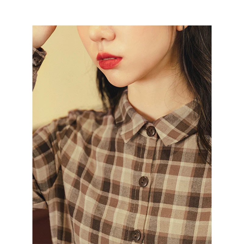 (67% Off) Купить INMAN , осень 2019, Новое поступление, Ретро стиль, для молодых девушек, с отложным воротником, в клетку, свободное, подходит ко всему, женское плат... Продажа Дешево