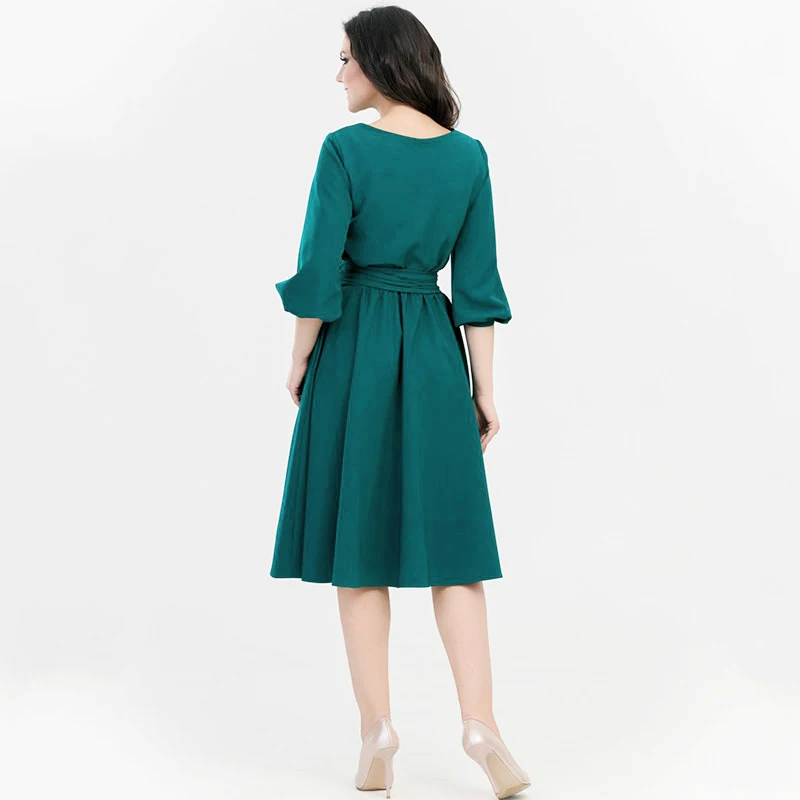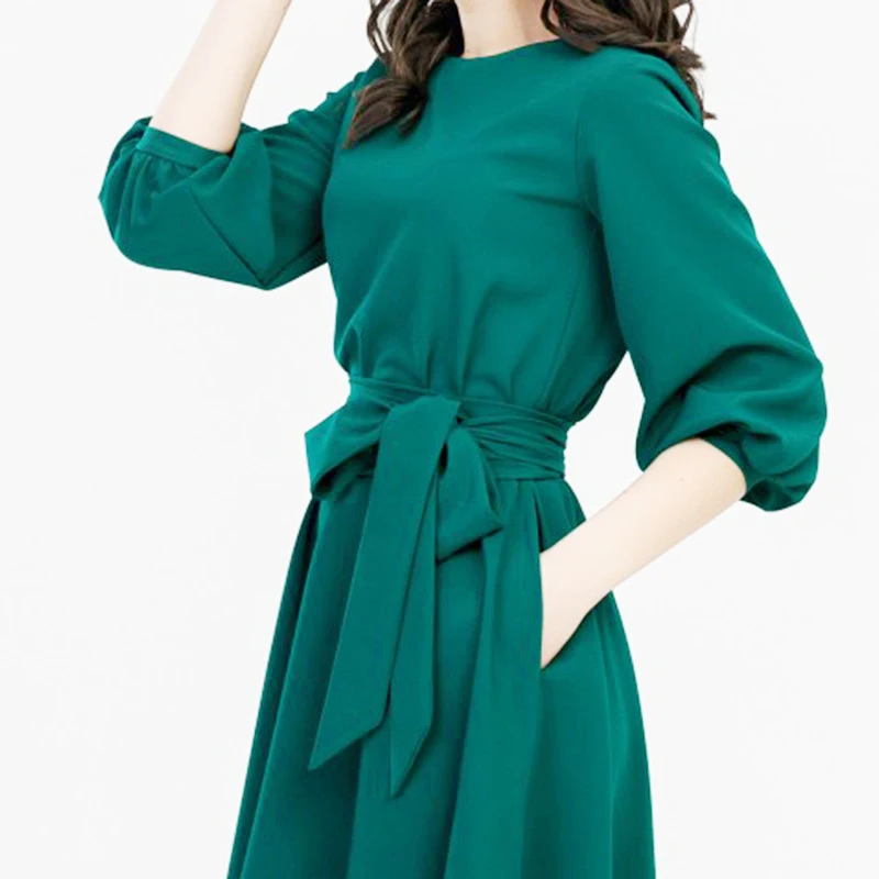Special Offer Ретро прочный фонарь рукав А силуэт юбка женская элегантная o образным вырезом половина рукав карман пояс длина до колена Повседневное плат... Discount 0% Today!