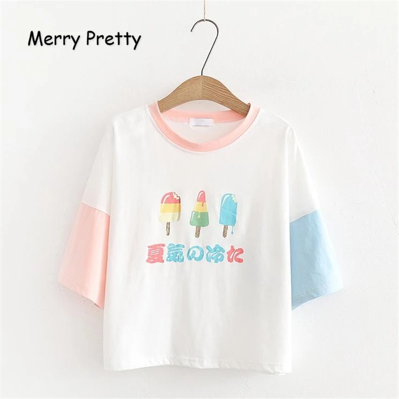 Product Name: Веселая Красивая Женская Футболка Harajuku с принтом, хлопковые топы с коротким рукавом, футболки для женщин в японском стиле, футболки с мультя...