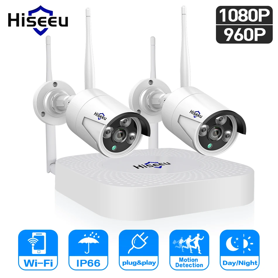 (25% Off) Купить Hiseeu Wi Fi видео наблюдение для дома камеры безопасности системы 4CH 1080P видеонаблюдение комплект NVR 2 шт. 960 P 1080 P беспроводного Ip камера набор вид... Цена Дешево