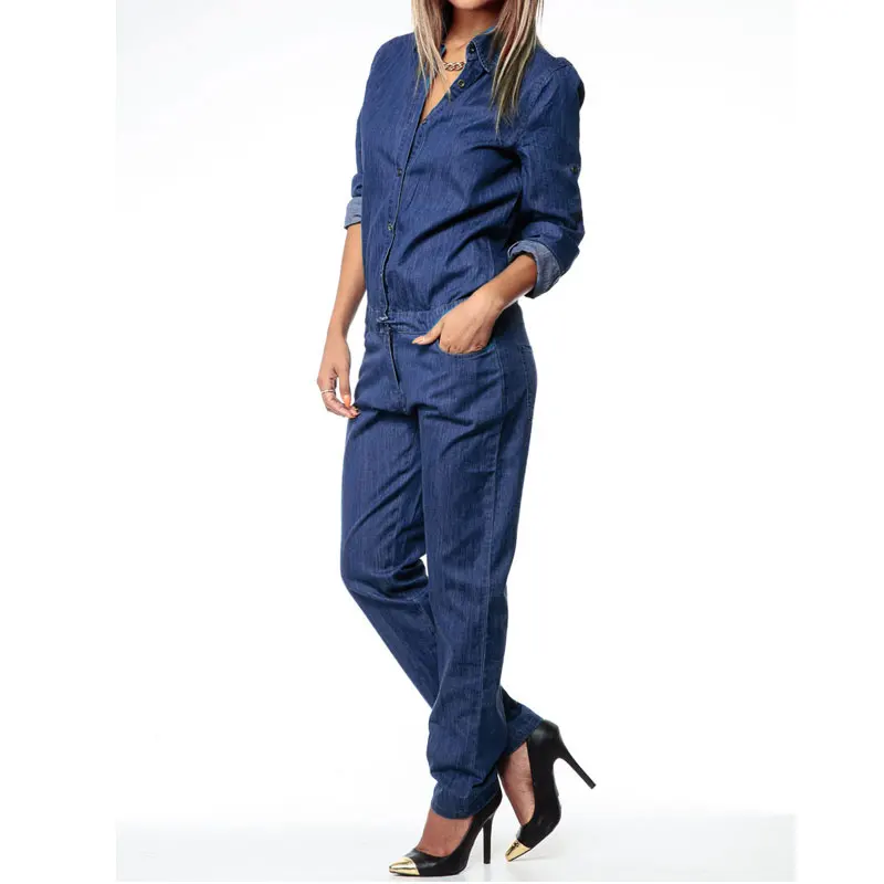Special Offer Повседневный стильный женский модный джинсовый комбинезон с длинным рукавом, Одноцветный комбинезон на бретельках, женские боди, Офисная Ж... Discount 28% Today!