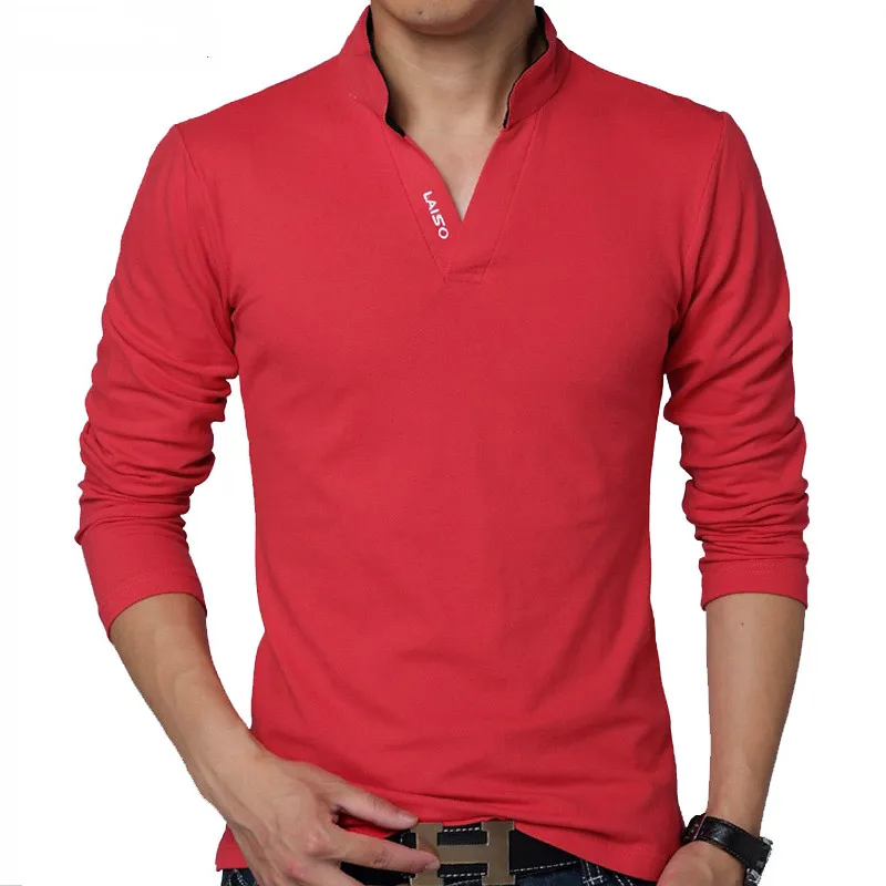 Special Offer Большой Размер 4XL 5XL воротник Мандарин Приталенная футболка с длинным рукавом для мужчин однотонные повседневные мужские футболки с v образ... Discount 30% Today!