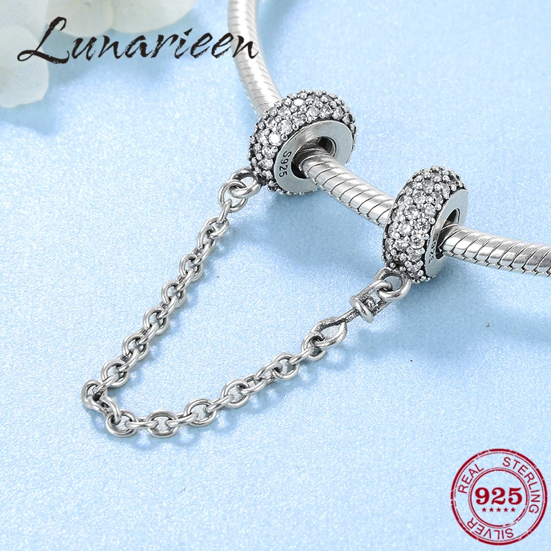 (31% Off) Купить 2018 Мода 925 стерлингового серебра DIY Круглый, прозрачный CZ тонкой безопасности цепи бусины подходят оригинальный Пандора амулеты браслет юве... Продажа Дешево
