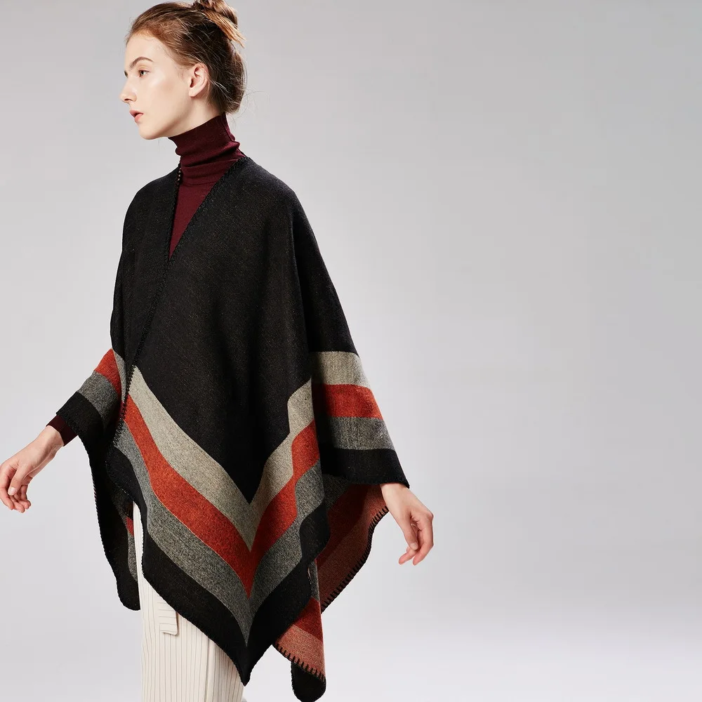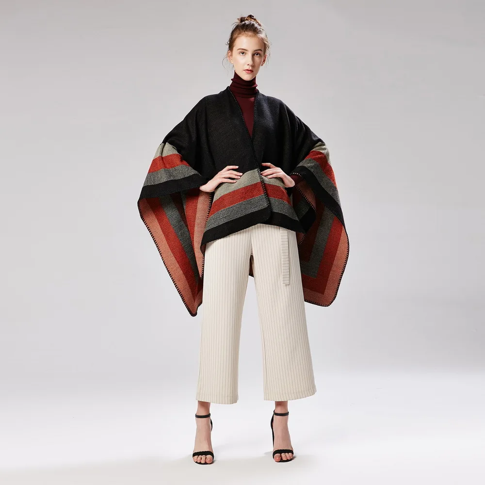 Special Offer Женское пончо с четырьмя полосками, большая оправа, имитация вилки, женские накидки, кашемировая жаккардовая шаль и плащ Discount 37% Today!