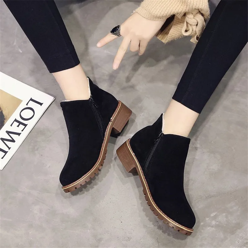 Product Name: Новые модные ботинки; женские ботинки; сезон осень зима; классические зимние ботильоны из флока на молнии; зимняя женская обувь из замши с те...