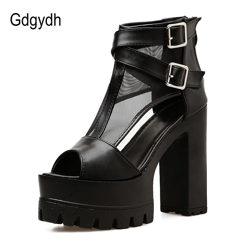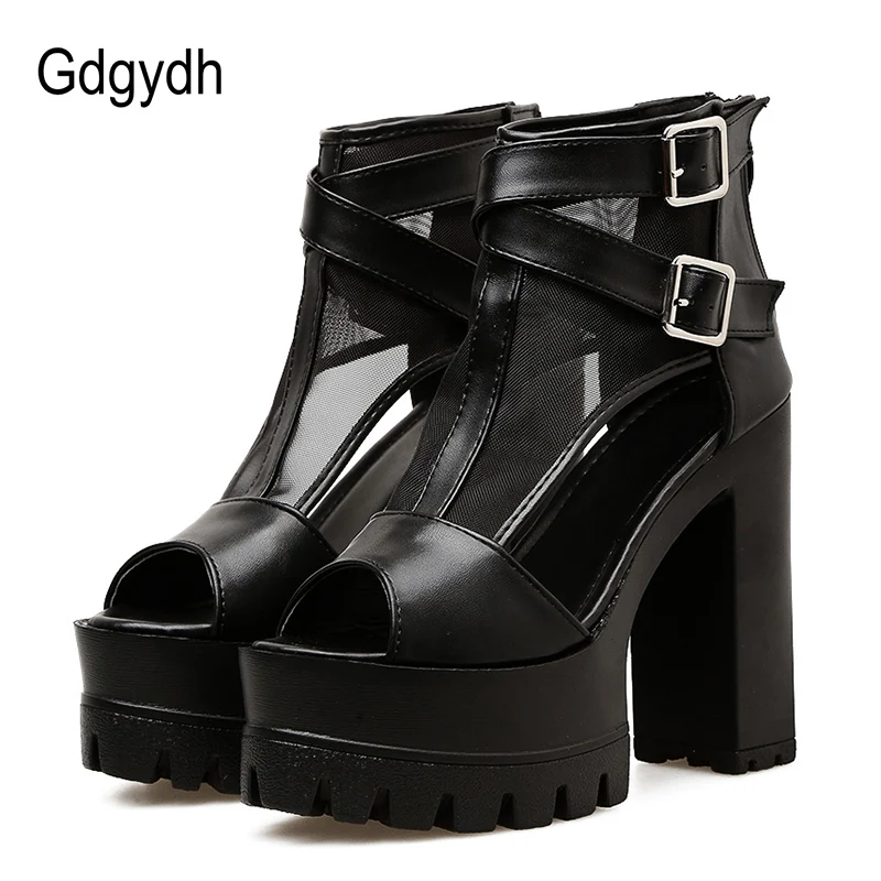 Special Offer Женские босоножки на платформе Gdgydh, черные вечерние туфли на высоком каблуке с открытым носком на молнии, лето 2019 Discount 41% Today!