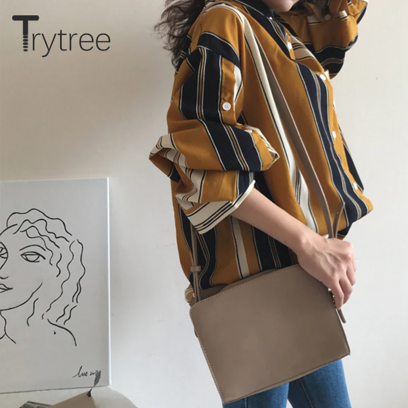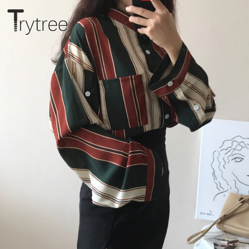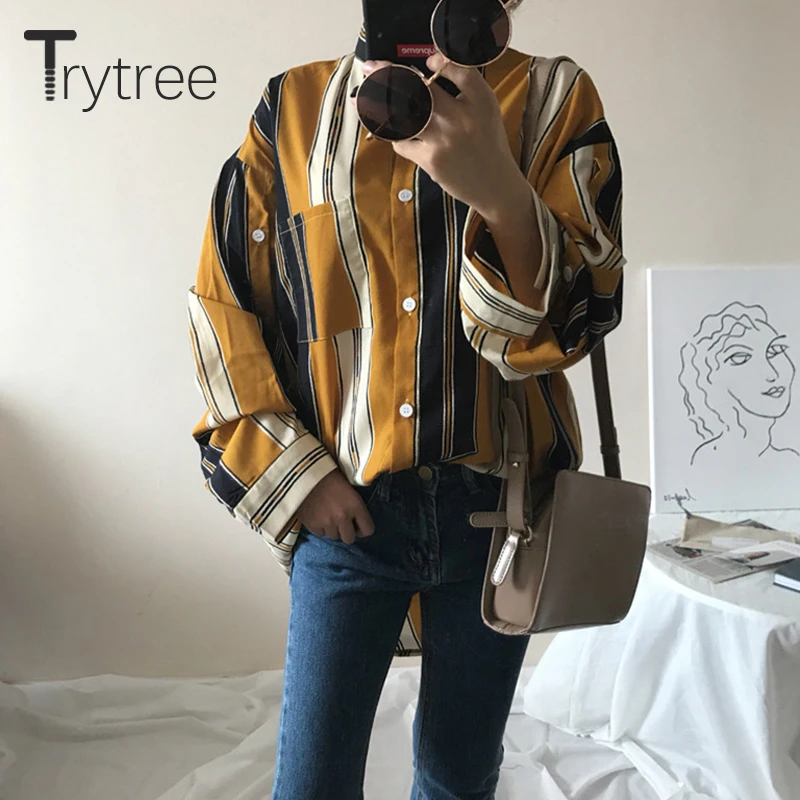 Special Offer Женская блузка в полоску Trytree, Повседневная рубашка с отложным воротником и длинным рукавом из полиэстера, весна лето Discount 41% Today!