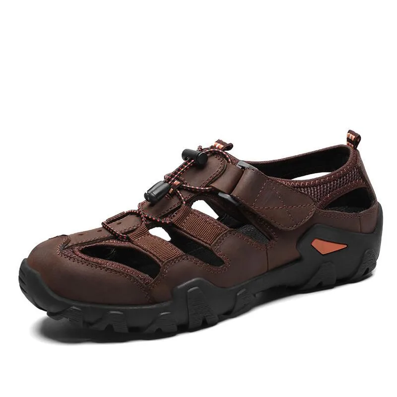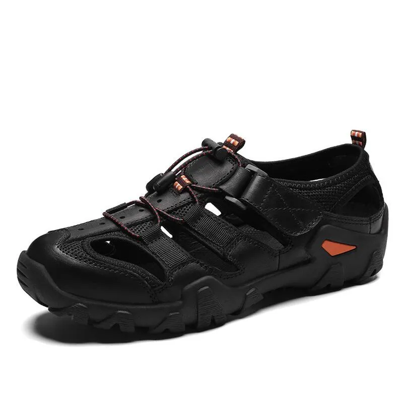 (42% Off) Купить Мужская обувь, повседневная Уличная обувь из натуральной кожи, Нескользящие кроссовки, пляжные сандалии, большие размеры 38 48, лето 2019 Цена Дешево