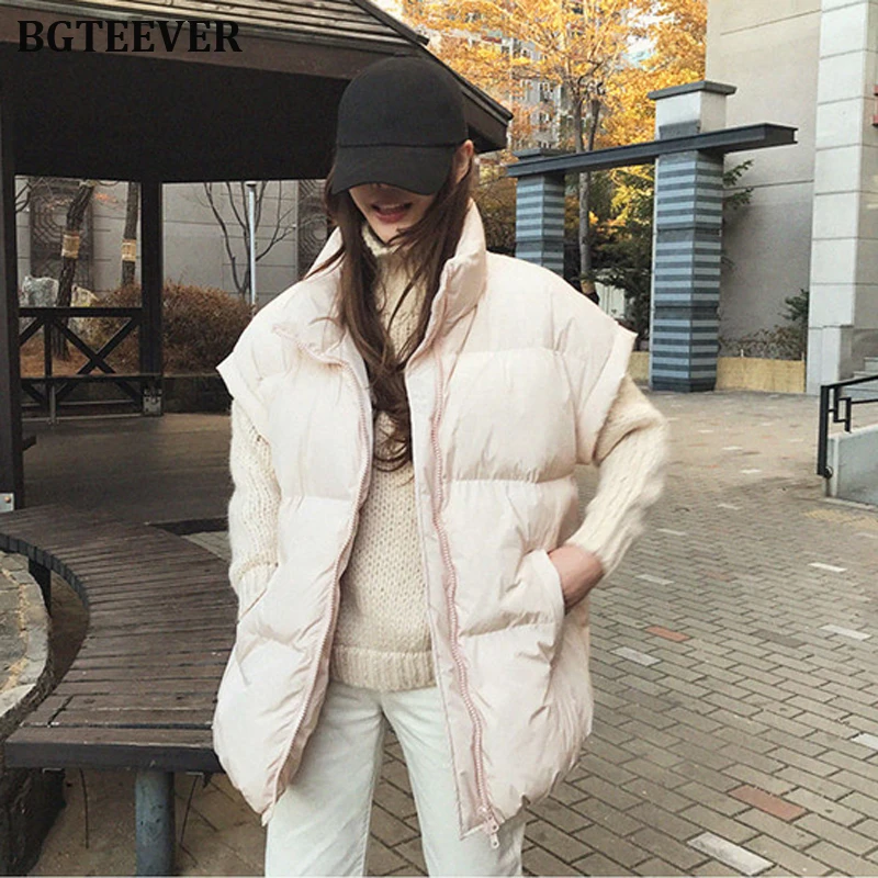 Product Name: BGTEEVER зимние парки жилет пальто Женская мода стоячий воротник повседневные Карманы вниз хлопок Мягкий жилет женские свободные куртки