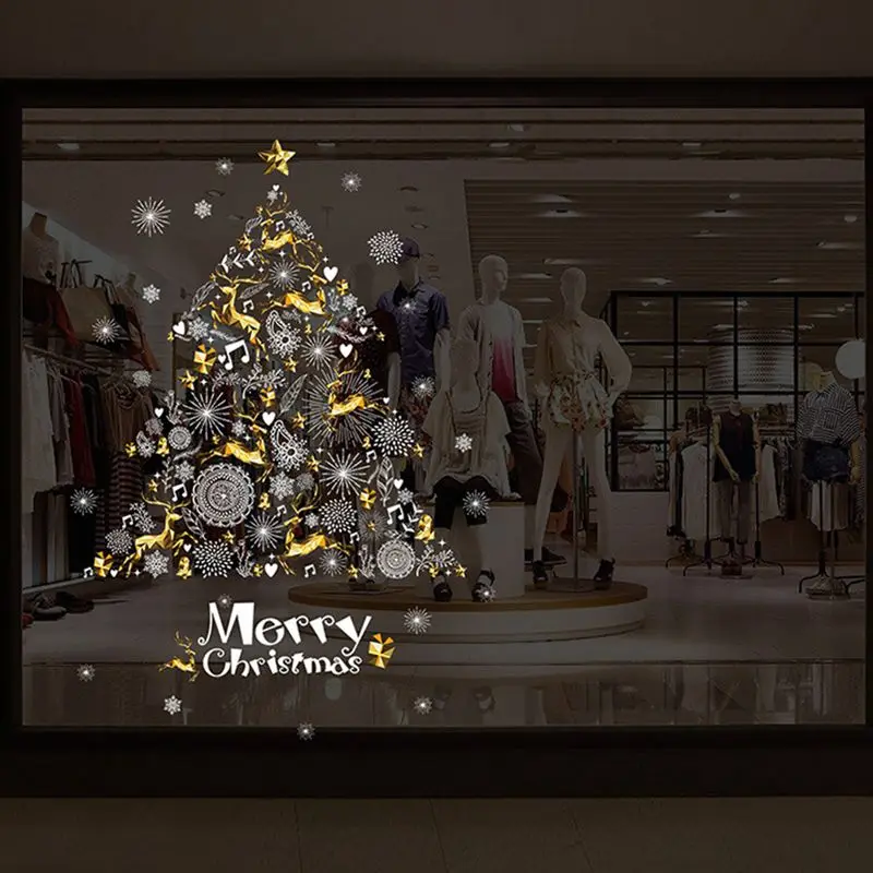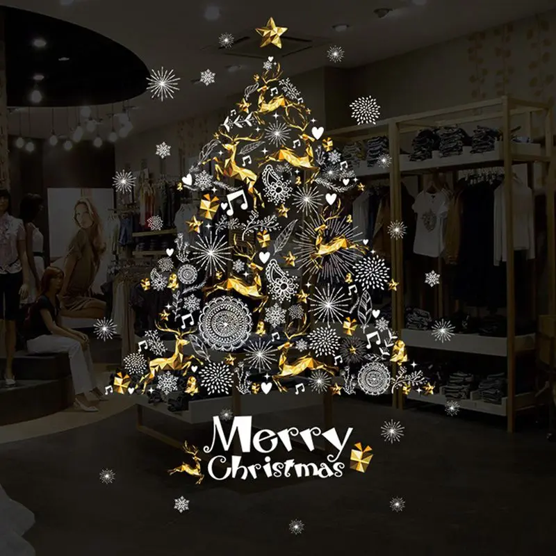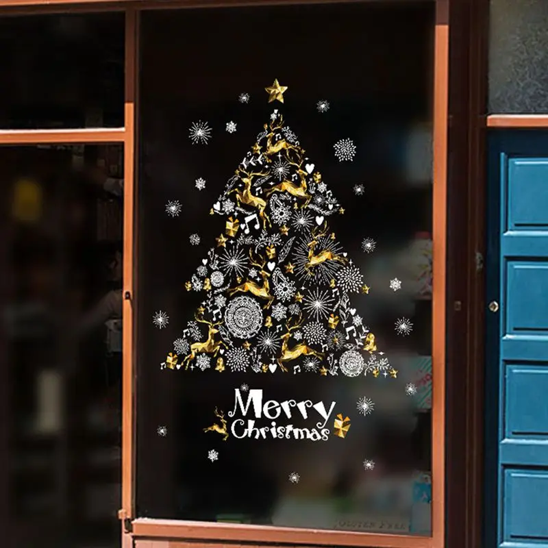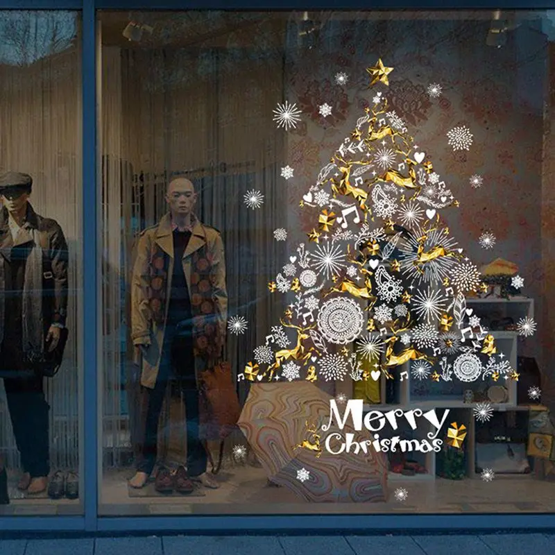 Special Offer Золотой Лось и Серебряная Снежинка Рождественская елка Наклейка на стену на Окно Роскошный магазин гостиной общежития Рождественские деко... Discount 52% Today!