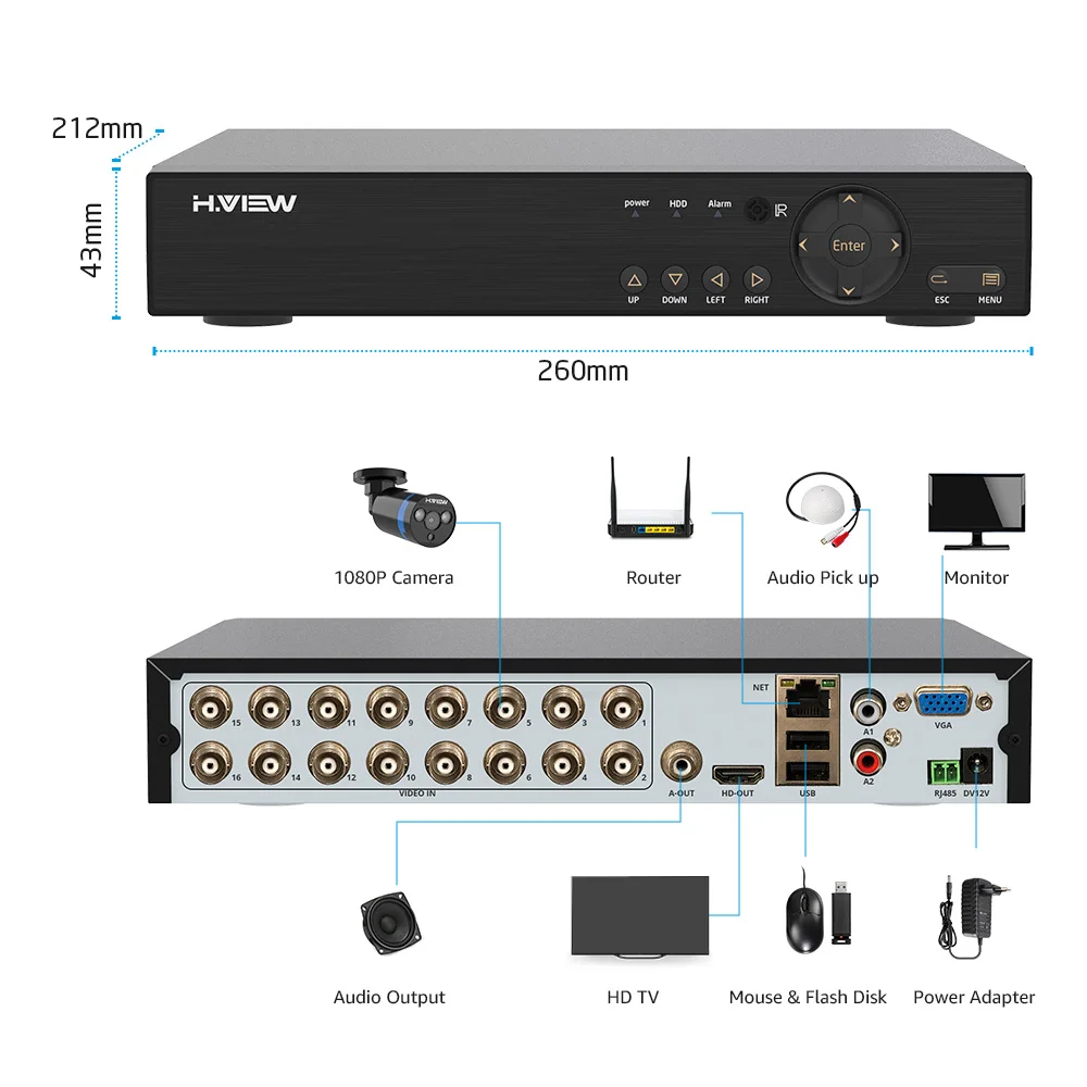 Product Name: H. View 16CH система видеонаблюдения 16 1080P наружная камера безопасности 16CH CCTV DVR комплект видеонаблюдения iPhone Android Удаленный просмотр