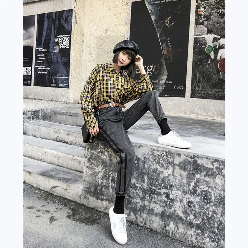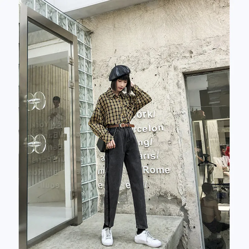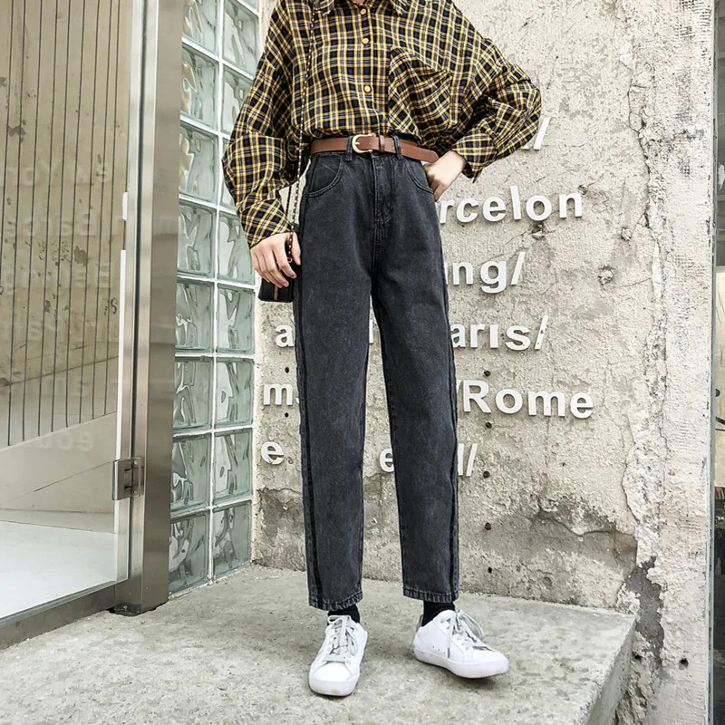 (69% Off) Купить Женские повседневные джинсы JUJULAND, черные свободные с полосками сбоку, большие размеры, M 5XL, 11996 Продажа Дешево