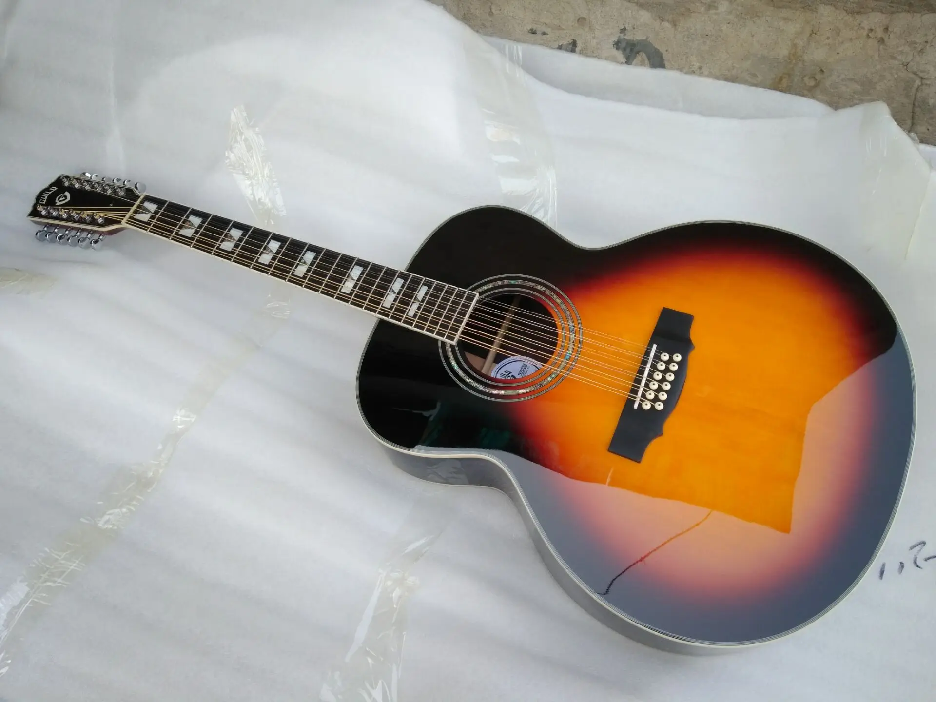 Product Name: Бесплатная доставка гриф F512 модель sunburst Джамбо Размер 12 струн акустическая электрическая твердая гитара guild Стиль Гитара