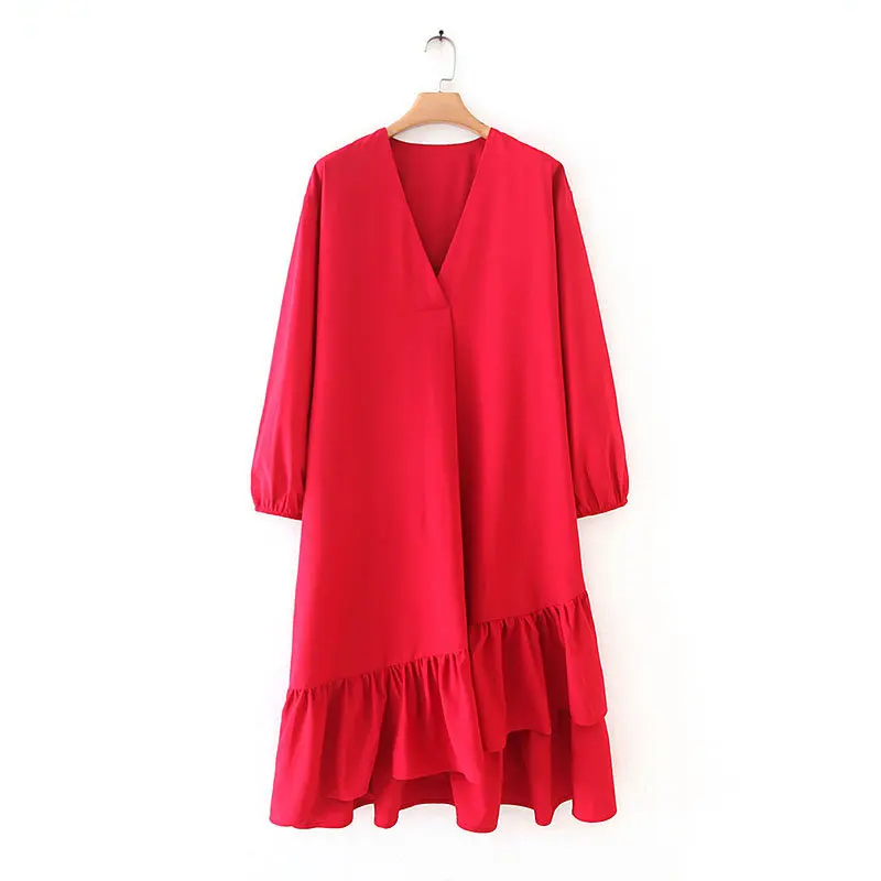 Product Name: Для женщин элегантное платье с v образным вырезом, однотонное, vestidos, гофрированная кайма оборками асимметричное платье осенние женские, пов...