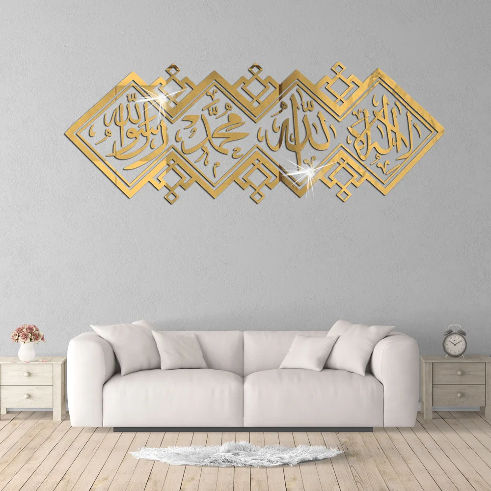 Product Name: Акриловые зеркальные золотые и серебряные 3D настенные наклейки мусульманский ислам Ид аль Фитр спальня гостиная самоклеющиеся декоративн...