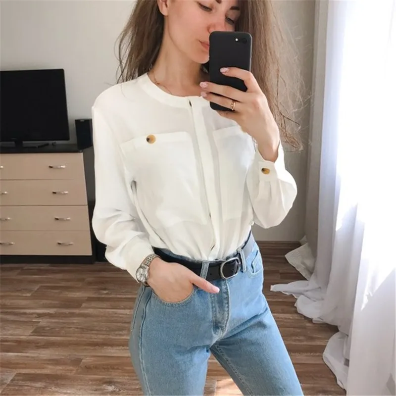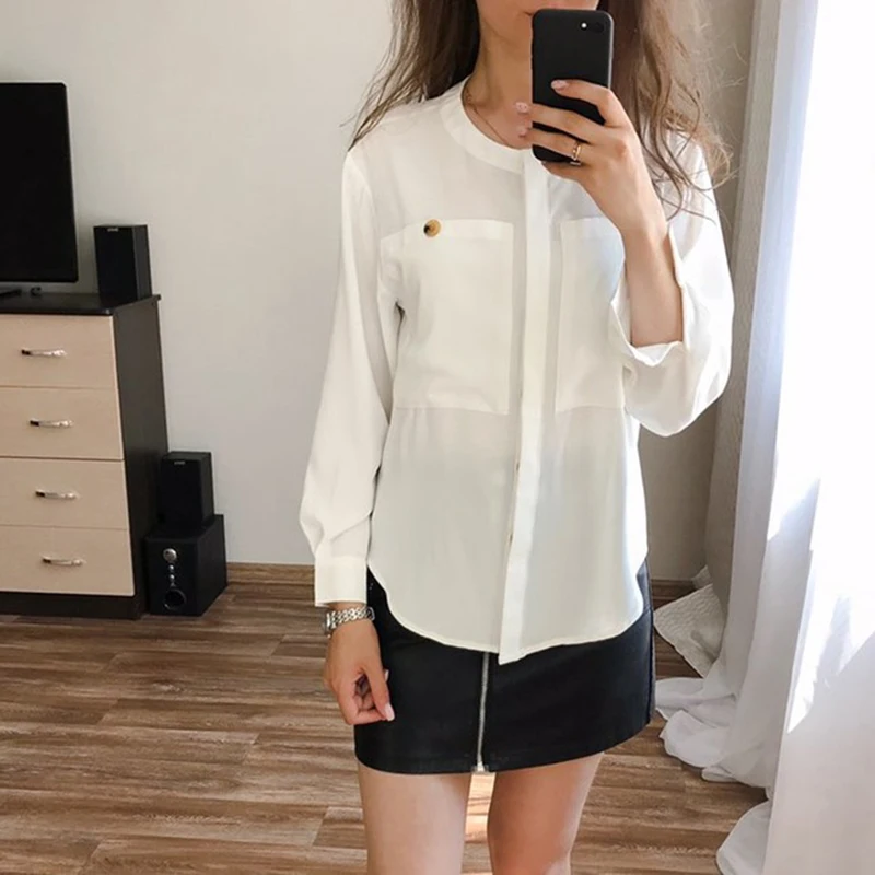 Special Offer GCAROL Новые поступления Весна Лето ассиметричная Длина блузка 2 большие карманы О образный вырез большие OL элегантная рубашка белые базовые Т... Discount 30% Today!