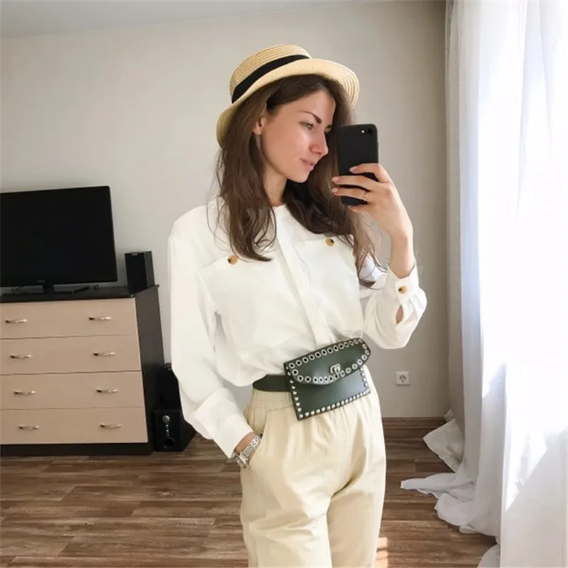 (30% Off) Купить GCAROL Новые поступления Весна Лето ассиметричная Длина блузка 2 большие карманы О образный вырез OL элегантная рубашка белые базовые Т... Продажа Дешево