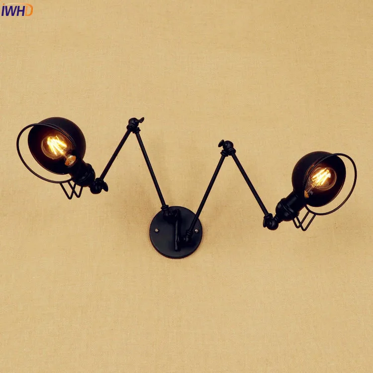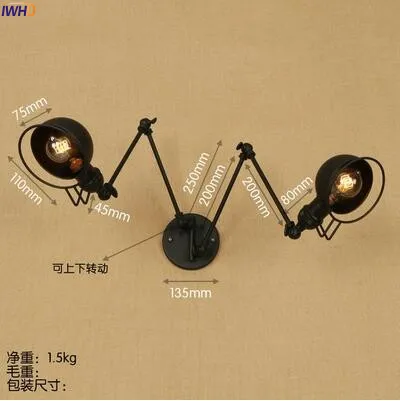 Product Name: IWHD черный длинный поворотный рычаг светодиодный настенный светильник винтажный 2 головки Wandlamp Ретро лестница свет Лофт Бра В индустриально...