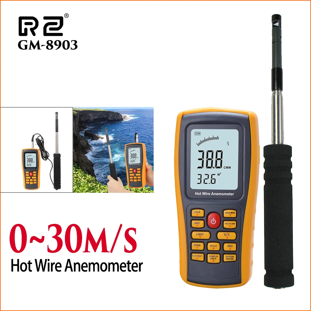 (42% Off) Купить RZ Анемометр цифровой измеритель скорости ветра датчик горячего провода анемометры 0 30 м с ЖК Анемометр ветромер ве... Цена Дешево
