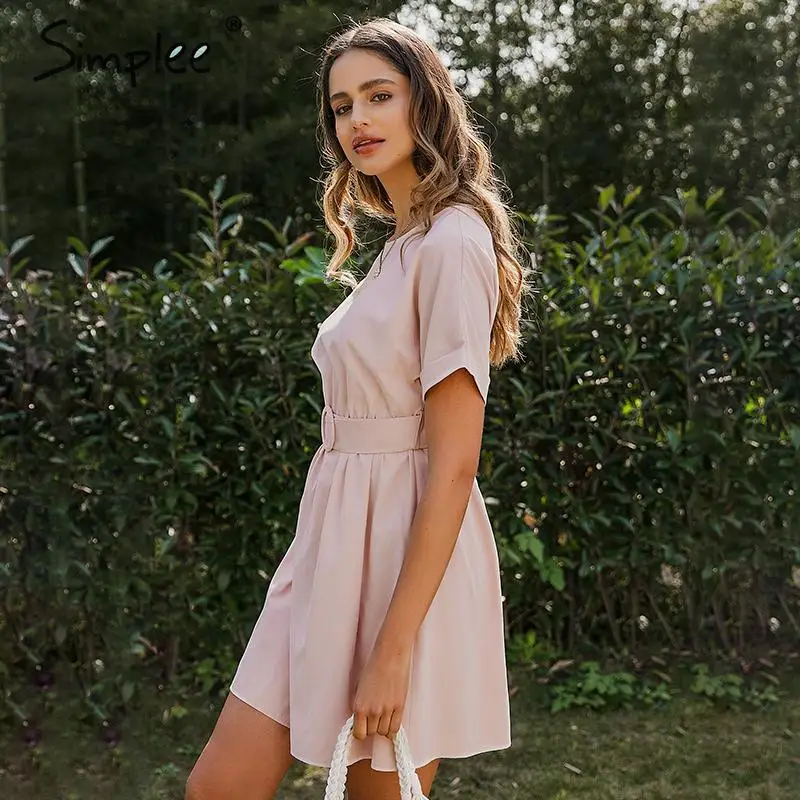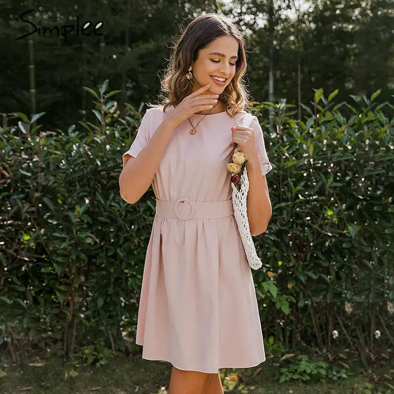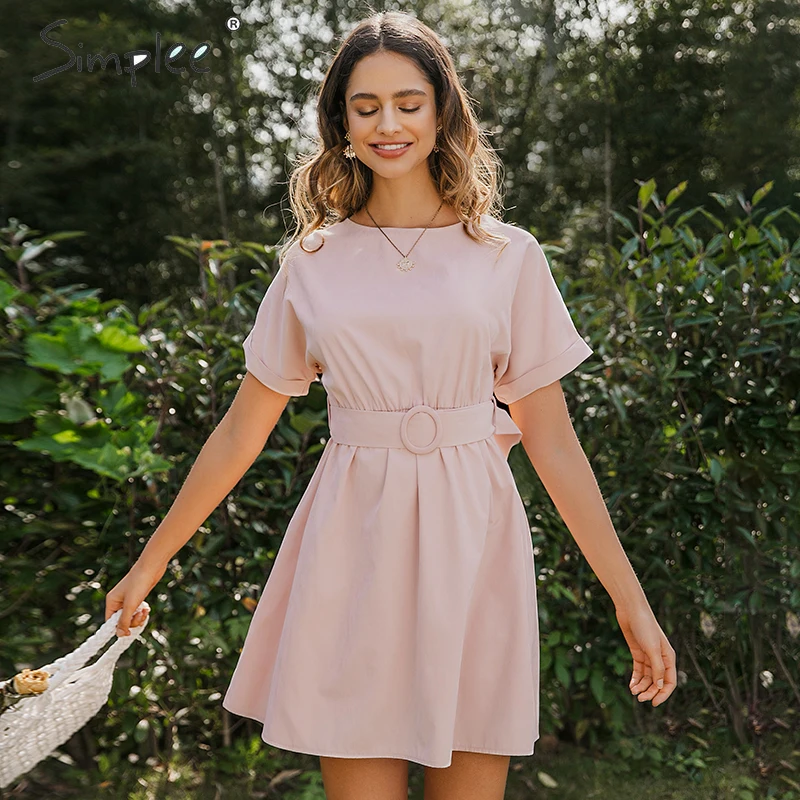 Special Offer Женское короткое платье с высокой талией Simplee, летнее платье с рукавами «летучая мышь», Повседневное платье розового цвета с круглым вырезо... Discount 42% Today!