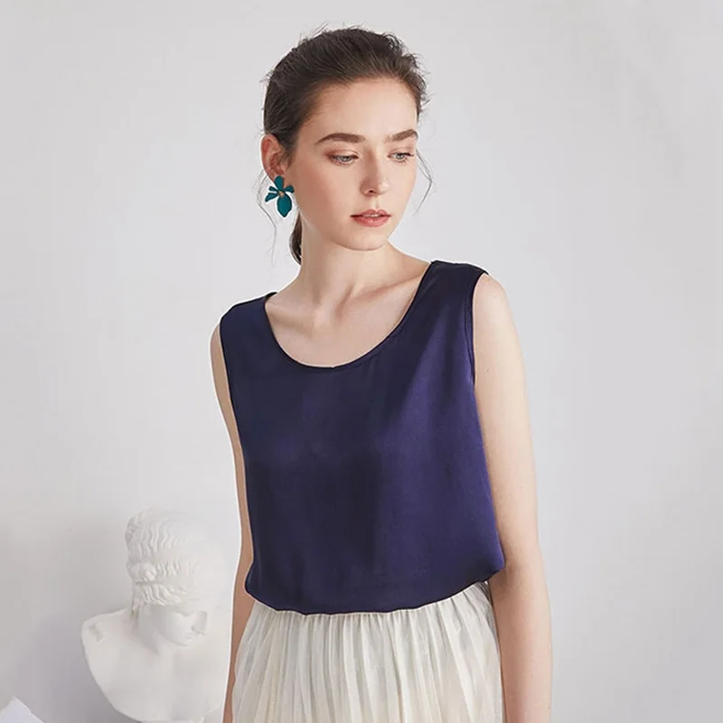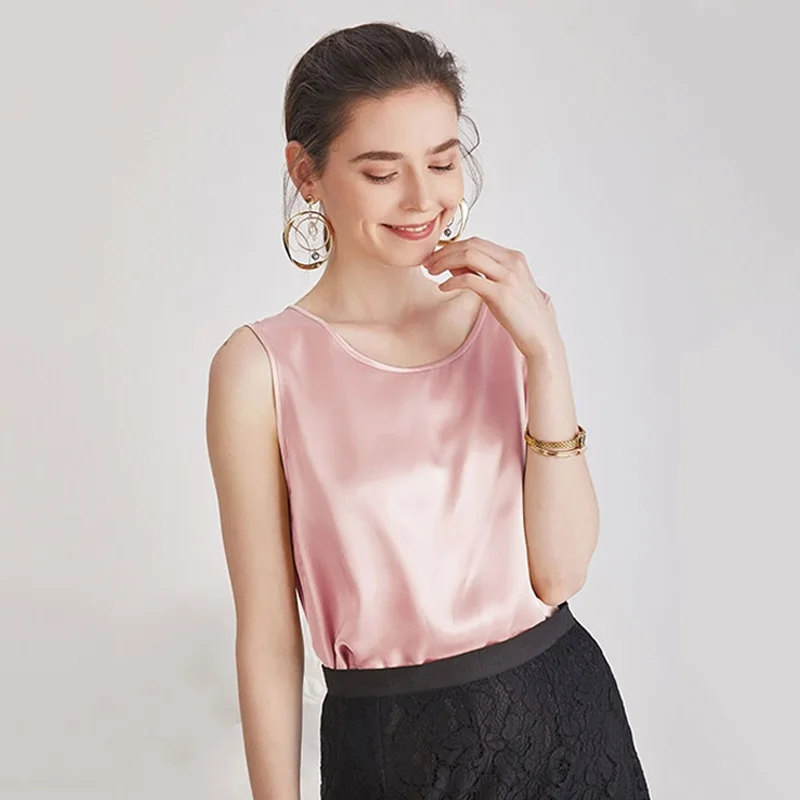 Product Name: SuyaDream женские шелковые майки, 100% натуральный шелк, сатин, круглый вырез, рубашка без рукавов, 2020, однотонные летние жилеты