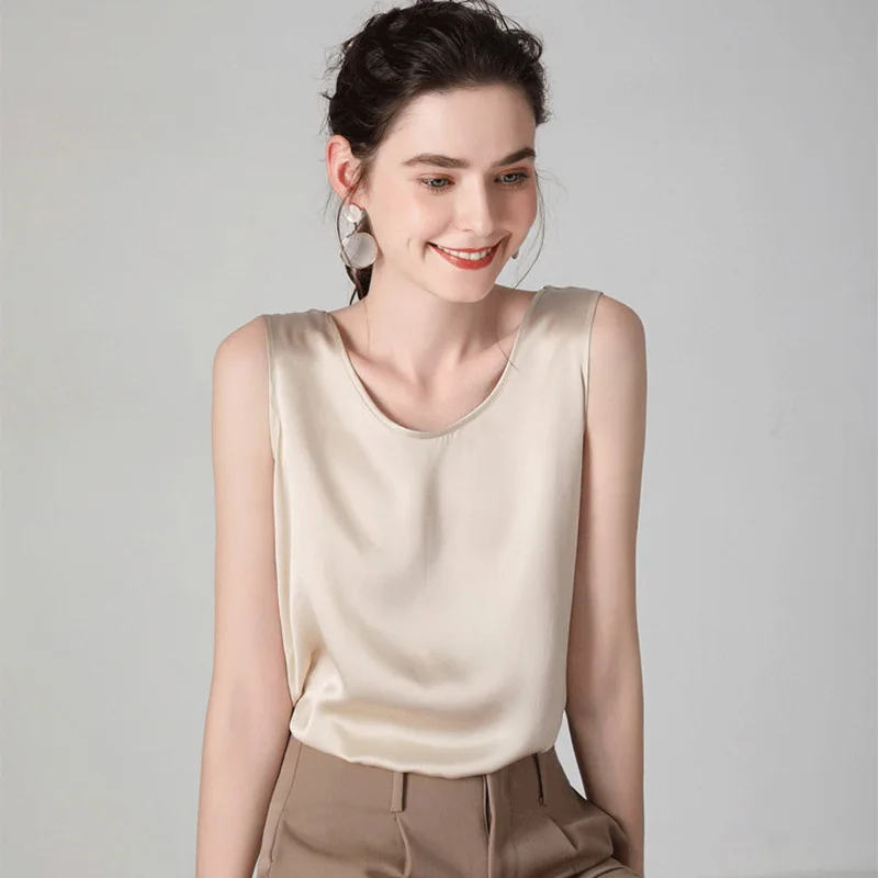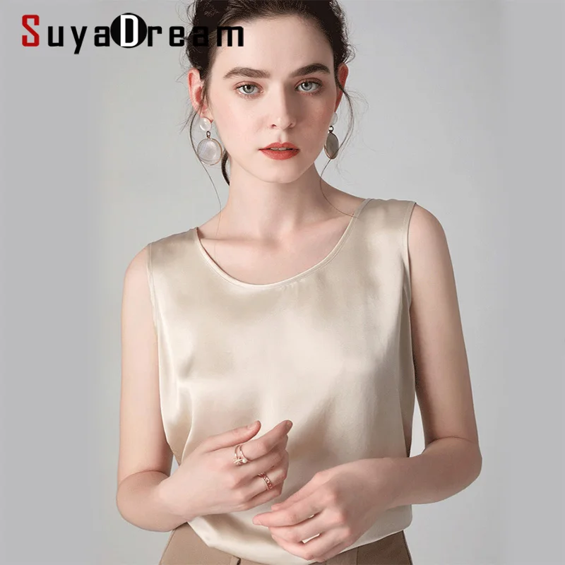 (42% Off) Купить SuyaDream женские шелковые майки, 100% натуральный шелк, сатин, круглый вырез, рубашка без рукавов, 2020, однотонные летние жилеты Цена Дешево