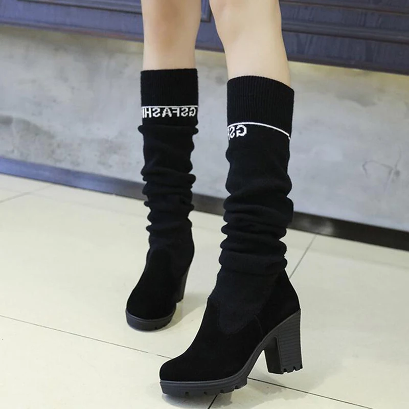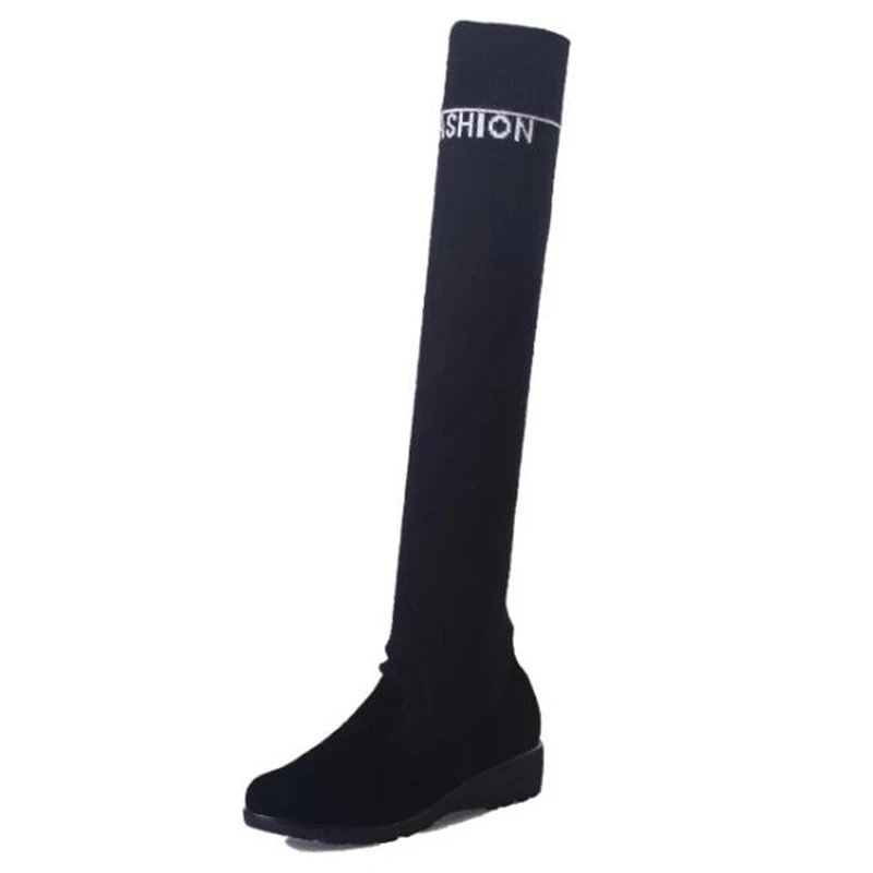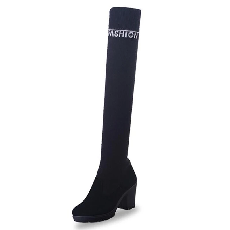 Product Name: Женские сапоги выше колена covoyar, черные облегающие высокие сапоги на высоком каблуке, на осень и зиму, WBS773, 2019
