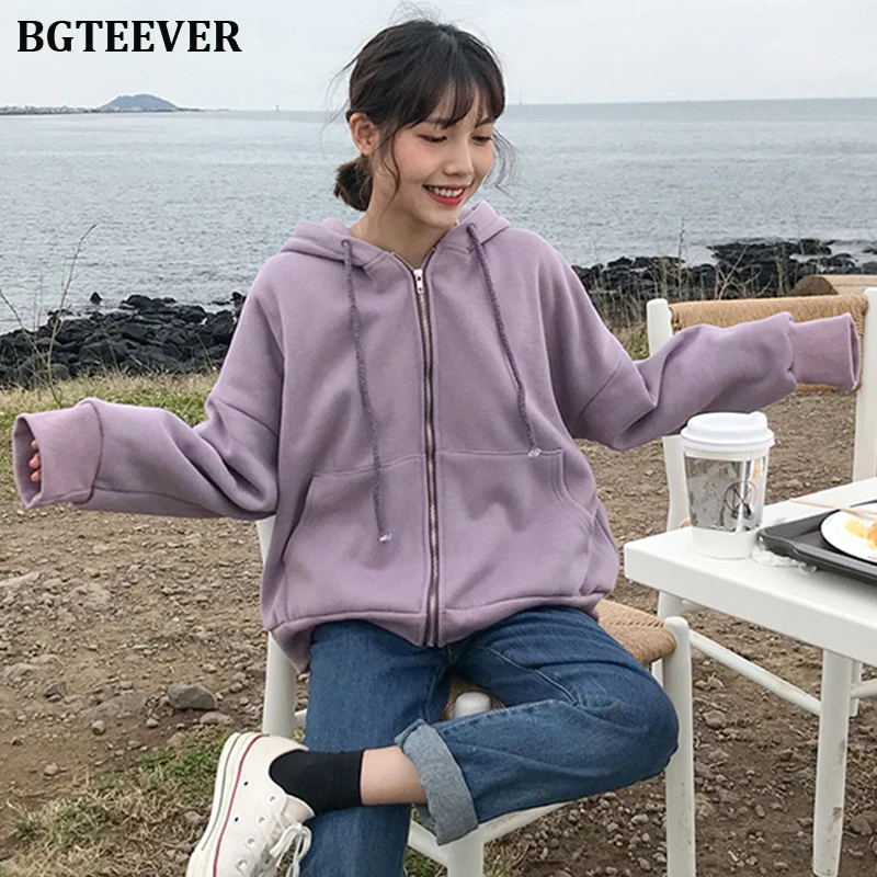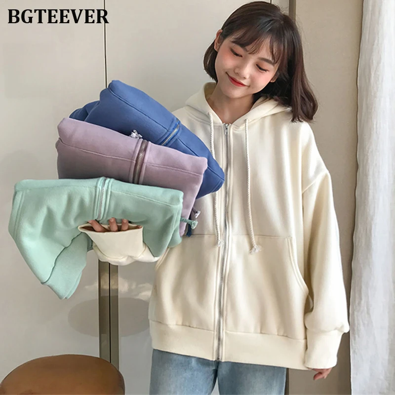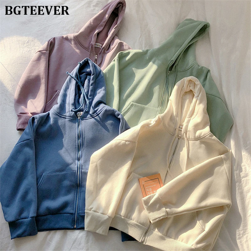 Special Offer BGTEEVER утепленная открытая стежка Женская толстовка на молнии с длинным рукавом женские толстовки с карманами женский спортивный костюм 2019 о... Discount 50% Today!